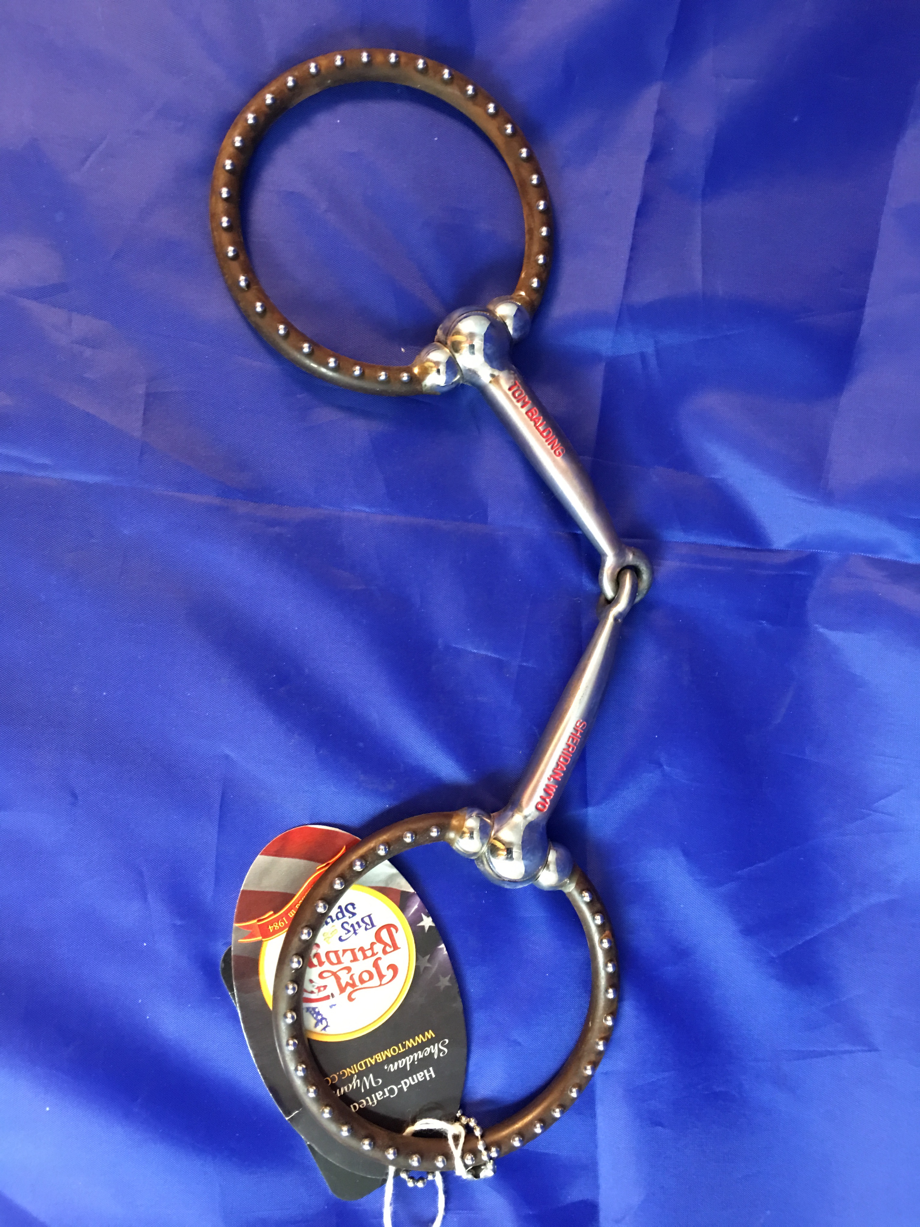 Tom Balding ballhinge snaffle in brown with stainless dots. Mouthpiece is slightly mullioned with copper inlay. Not a lot to say other than Balding snaffles are the finest around.